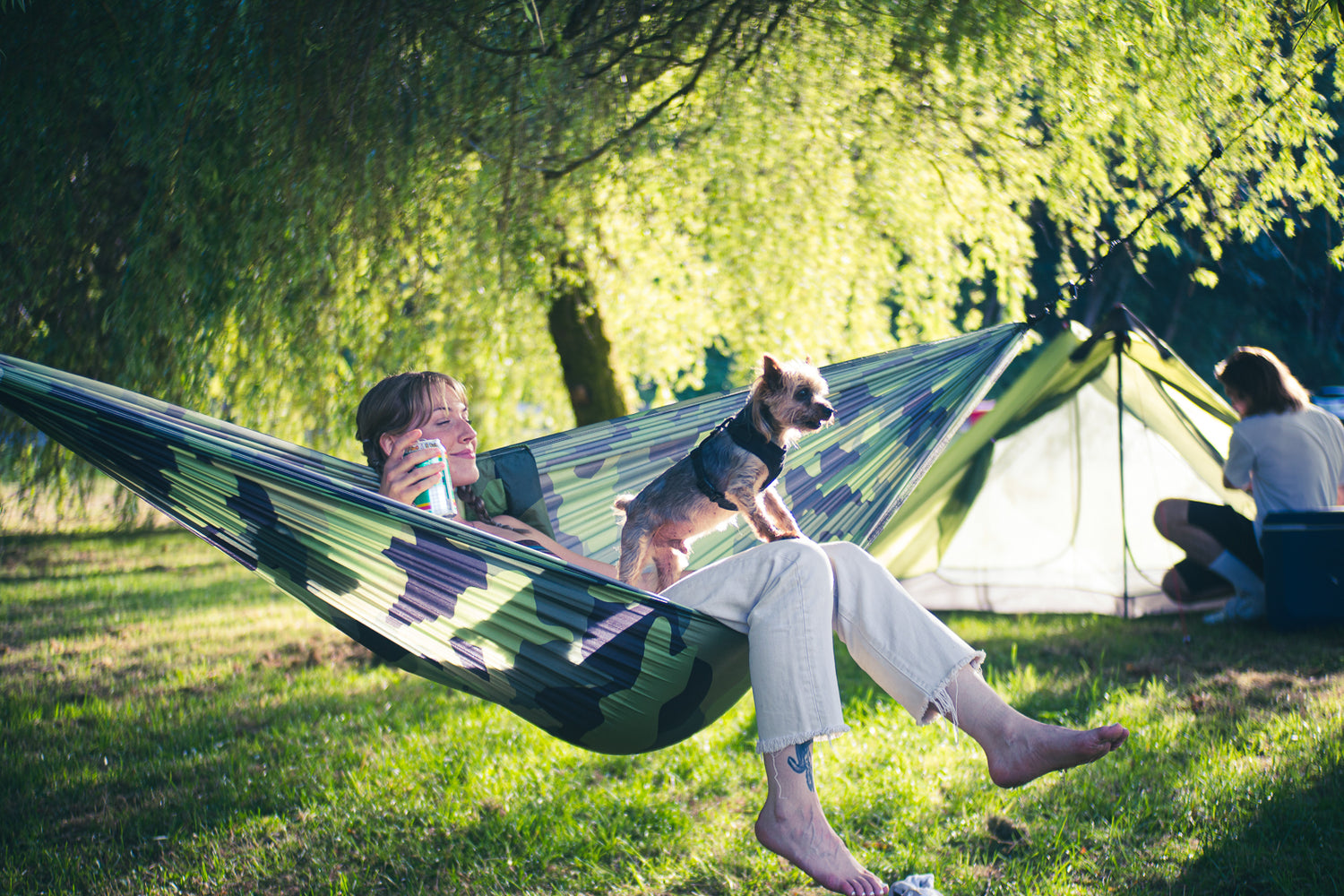 Our Vagabond Nylon Hammocks fit two humans (and a dog) and are...